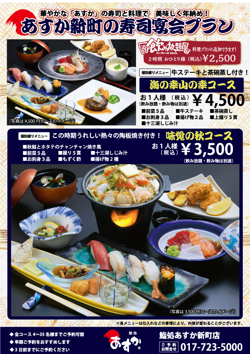 2025.09.30 あすか新町店の寿司宴会プラン